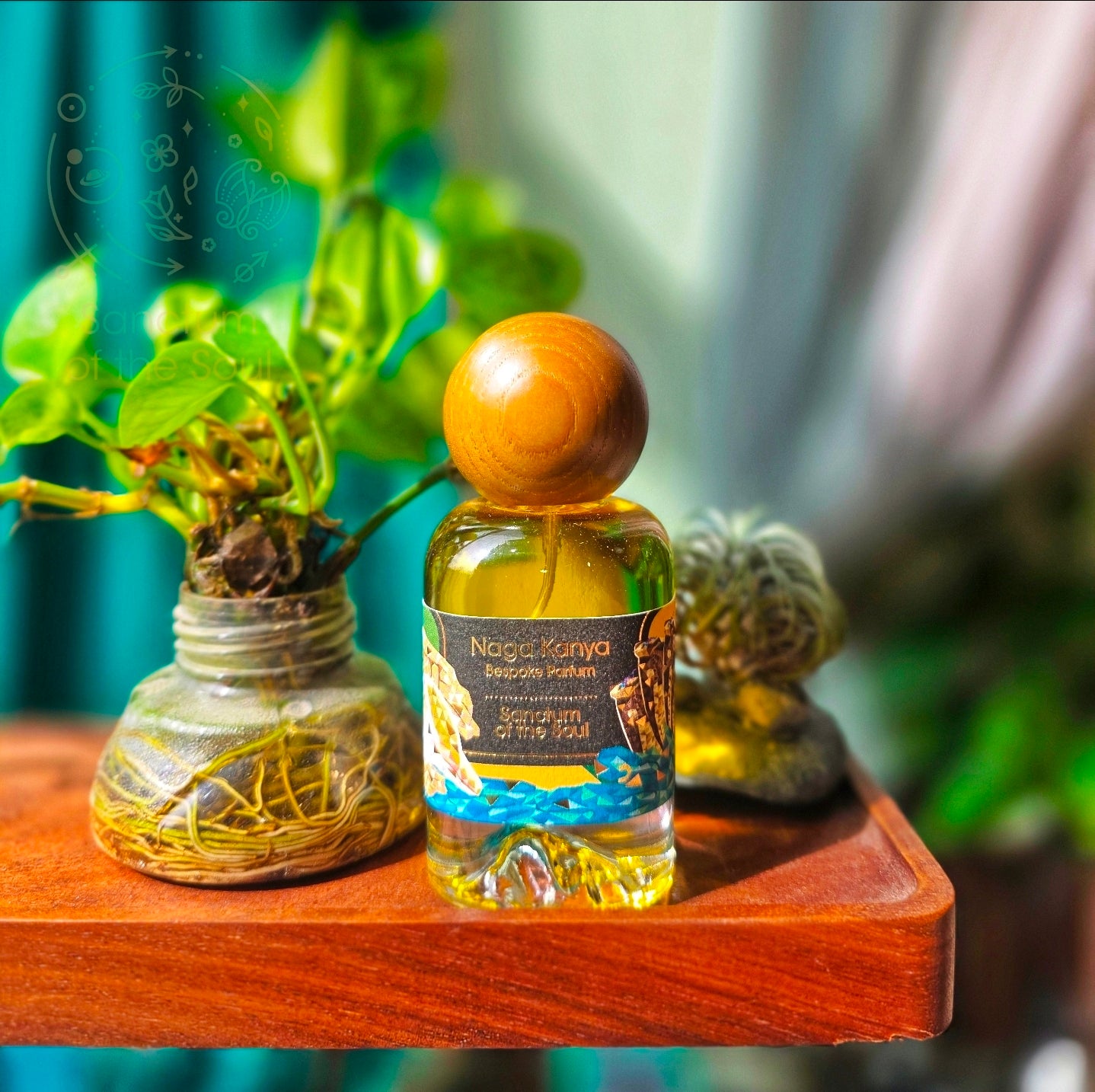 Naga Kanya blesses us with purification, protection, and the gentle strength of flowing transformation. As the serpent maiden and lifeblood of the earth, she weaves together the energies of water and spirit, cleansing what is stagnant and renewing what is weary. Each spritz is a baptism of her grace — dissolving heaviness, shielding against negativity, and awakening intuition’s quiet voice. She teaches us to shed old skins with courage, embracing the cycles of rebirth and spiritual growth with fluidity and ease. Her presence nurtures balance and serenity, fostering deeper connection to both the natural world and the divine currents within. In her embrace, we are made whole again — refreshed, protected, and aligned with the eternal rhythm of renewal.