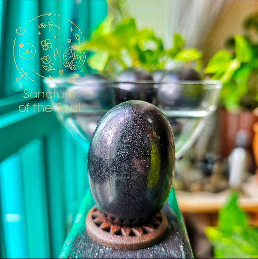 Available in 2 Sizes, around 5-6cm. Comes with a simple stand, but feel free to use a more traditional Shaligram holder if you've got one!